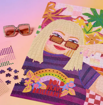 A fabulous 1000 Piece Puzzle by the incomparable Sandra Gale. Once you puzzle it, have fun bedazzling it with gem stickers. The ultimate puzzle for every strong lady, emerging strong lady and supporter of strong ladies!