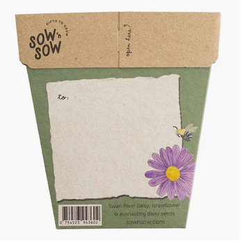 Inside the beautifully designed pack, the recipient will discover a mix of strawflower, Swan River daisy and everlasting daisy seeds, promising vibrant blooms - a living testament to your heartfelt wishes.